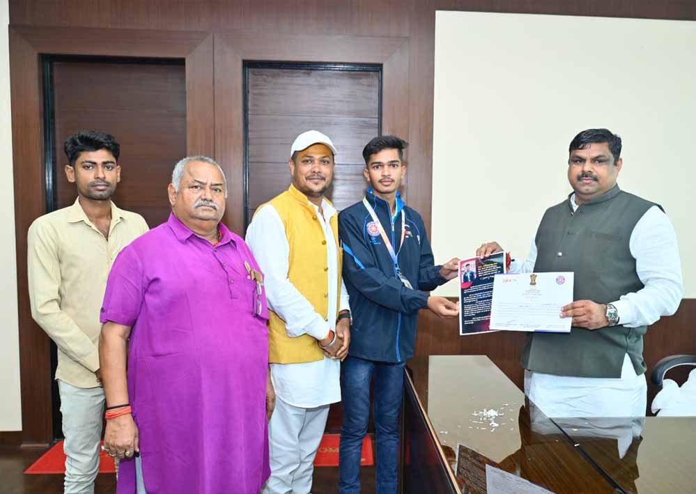 शासकीय कचना धुरवा कॉलेज, छुरा जिला - गरियाबंद में बी कॉम तीसरे सेमेस्टर के छात्र श्री ओमप्रकाश सेन, ग्राम दादरगांव पुराना निवासी हैं। कैम्प से लौटने के उपरांत उन्होंने मंत्री श्री यादव से मुलाकात की। मंत्री श्री यादव ने ओमप्रकाश सेन को राष्ट्रीय स्तर पर छत्तीसगढ़ की भागीदारी हेतु हार्दिक शुभकामनाएं देते हुए कहा कि युवा शक्ति ही देश का भविष्य है। प्रदेश के छात्र राष्ट्रीय मंचों पर सहभागिता कर समाज और राज्य का नाम रोशन कर रहे हैं। उन्होंने श्री ओमप्रकाश सेन के उज्ज्वल भविष्य की कामना करते हुए आगे भी इसी तरह सामाजिक व शैक्षणिक गतिविधियों में सक्रिय योगदान देते हुए आगे बढ़ते रहने के लिए प्रेरित और प्रोत्साहित किया।