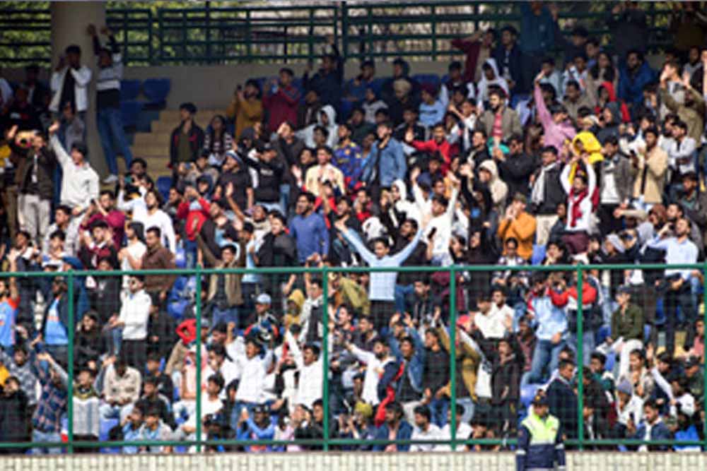 दिल्ली और रेलवे के बीच रणजी ट्रॉफी मैच के पहले दिन अरुण जेटली स्टेडियम में 15,000 से अधिक लोगों की भीड़ उमड़ी। दिल्ली एवं जिला क्रिकेट संघ (डीडीसीए) के एक वरिष्ठ अधिकारी ने यह जानकारी दी है। शुक्रवार को दूसरे दिन के खेल के लिए अधिक सुरक्षाकर्मियों को तैनात किया गया है। भारतीय क्रिकेट टीम के स्टार बल्लेबाज विराट कोहली की बल्लेबाजी को देखने के लिए प्रशंसक सुबह 6 बजे से स्टेडियम के बाहर लाइन में खड़े थे। दिल्ली पुलिस ने स्टेडियम के आसपास सुरक्षा उपायों पर कल शाम डीडीसीए के लोगों के साथ एक बैठक की और दूसरे दिन के खेल के लिए और अधिक सुरक्षाकर्मियों को तैनात करने का फैसला किया।