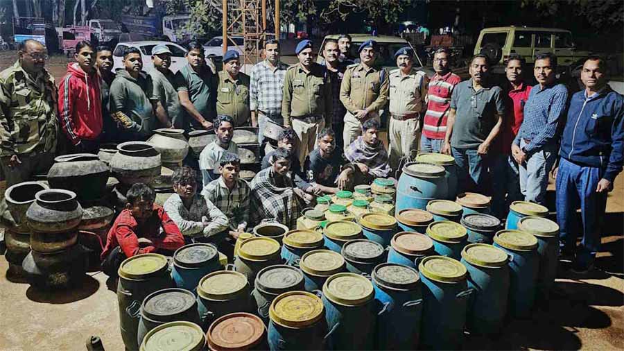 नदी किनारे बनाई जा रही थी कच्ची महुआ शराब, पुलिस ने मारा छापा, 1575 लीटर शराब जब्त