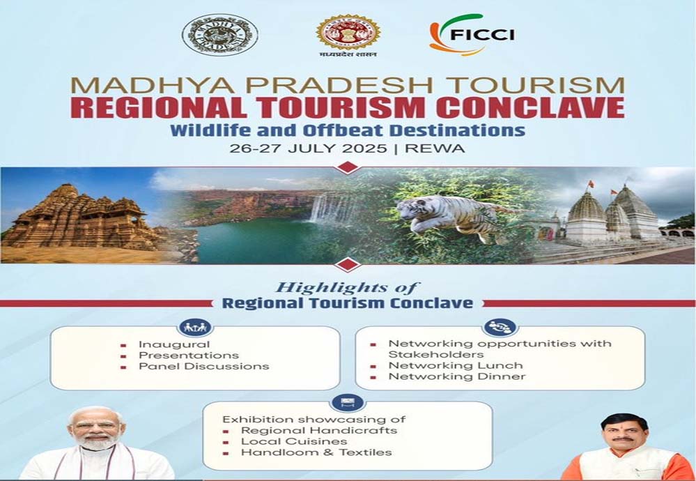 मध्य प्रदेश सरकार विंध्य के औद्योगिक विकास के लिए शनिवार को रीवा में रीजनल टूरिज्म कॉन्क्लेव करने जा रही है। मुख्यमंत्री डॉ. मोहन यादव पर्यटन व्यवसायियों, टूर ऑपरेटर्स और होटल इंडस्ट्री के बीच सहयोग और साझेदारी को बढ़ावा देने के उद्देश्य से रीवा में दो दिवसीय रीजनल टूरिज्म कॉन्क्लेव का कृष्णा राज कपूर ऑडिटोरियम में शनिवार को उद्घाटन करेंगे।