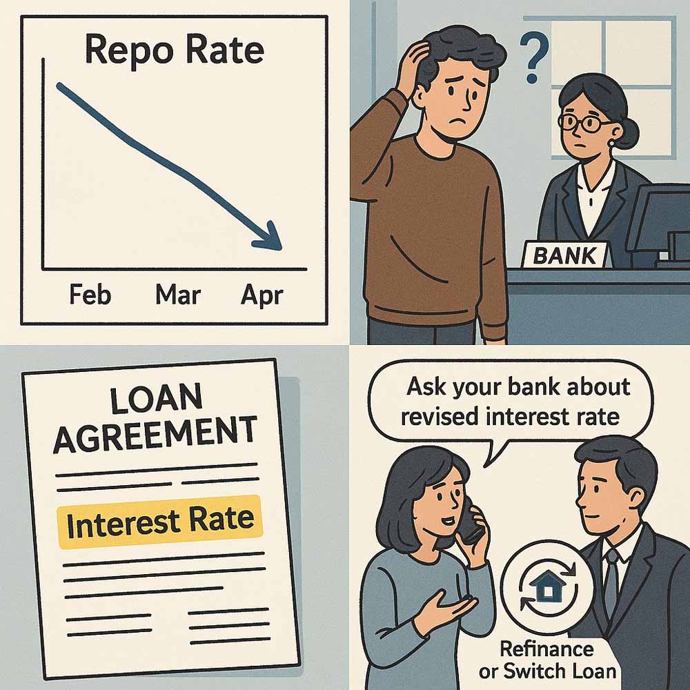 अपने बैंक से संपर्क करें – पूछें कि क्या रेपो रेट कट का लाभ आपको मिला है या नहीं।