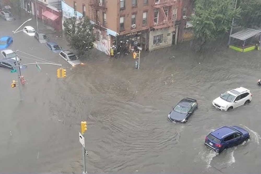 न्यूयॉर्क और न्यूजर्सी में भारी बारिश और तूफान से दो लोगों की मौत हो गई। मूसलाधार बारिश होने से पूरा इलाका पानी में डूब गया। न्यूयॉर्क का सबवे सिस्टम ठप हो गया और पूरे इलाके में बिजली गुल हो गई। प्लेनफील्ड में सोमवार को तेज बारिश के कारण एक गाड़ी सेडर ब्रूक में बह गई। इससे दो लोगों की मौत हो गई। गवर्नर फिल मर्फी ने बताया कि दोनों को घटनास्थल पर ही मृत घोषित कर दिया गया। उन्होंने खराब मौसम के कारण आपातकाल की घोषणा की है। इस महीने शहर में तूफान से होने वाली यह तीसरी और चौथी मौतें थीं।