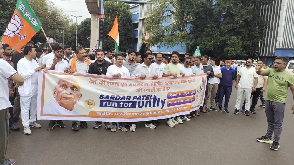 देश के लौह पुरुष सरदार वल्लभभाई पटेल की 150वीं जयंती के अवसर पर राजधानी रायपुर में एक बार फिर एकता, अखंडता और राष्ट्रीय समरसता का संदेश गूंजा 31 अक्टूबर को भारतीय जनता पार्टी,प्रदेश,जिला,युवा मोर्चा,मंडल, द्वारा 'Run for Unity' कार्यक्रम का भव्य आयोजन किया गया।