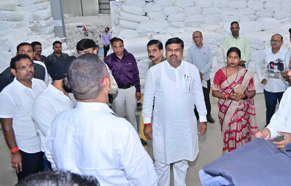 हाथकरघा उद्योग को बढ़ावा देने ग्रामोद्योग मंत्री का बुनकर संघ गोदाम दौरा