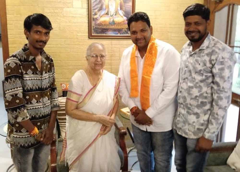 पूर्व लोकसभा स्पीकर ओर इंदौर में लगातार आठ बार की सांसद आदरणीय सुमित्रा महाजन ताई द्वारा सावरकर मंडल विधानसभा क्षेत्र क्रमांक 5 के सागर लखार को मीडिया प्रभारी नियुक्त होने पर बधाईयां दी,श्रीराम जी का भगवा दुपट्टा पहनाकर सम्मानित किया।ओर मिठाईयां खिलाकर मुंह मीठा करवाया।साथ ही पार्टी के साथ अपने कर्म के प्रति सजग और निस्वार्थ कार्य करने की प्रेरणा दी।स्वागत होने पर वीर सावरकर मंडल अध्यक्ष नितेश जैन ने बधाइयां दी। इस उपलक्ष्य पर अंतराष्ट्रीय अवॉर्डी सुनील ठाकुर,संजू मीणा,प्रदीप नायक राहुल चौहान उपस्थित हुए।