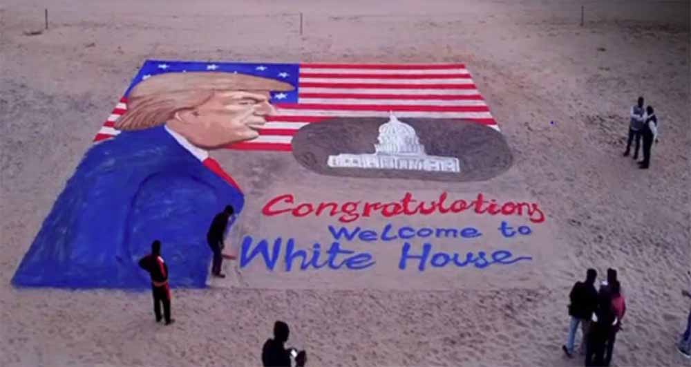 ओडिशा के पुरी बीच पर प्रसिद्ध सैंड आर्टिस्ट सुदर्शन पटनायक ने अमेरिका के नवनिर्वाचित राष्ट्रपति डोनाल्ड ट्रंप के शपथ ग्रहण समारोह से पहले उनकी 47 फीट लंबी सैंड आर्ट बनाई है। इस चित्र पर उन्होंने लिखा "वेलकम टू व्हाइट हाउस"। यह सैंड आर्ट पटनायक ने अपने सैंड आर्ट संस्थान के छात्रों के साथ मिलकर तैयार किया है। ट्रंप सोमवार, 20 जनवरी को अमेरिकी राष्ट्रपति के रूप में शपथ लेंगे। यह चार साल के अंतराल के बाद व्हाइट हाउस में उनकी वापसी होगी। सुदर्शन पटनायक की यह कला अमेरिका के शपथ ग्रहण समारोह से पहले एक महत्वपूर्ण संदेश देती है।