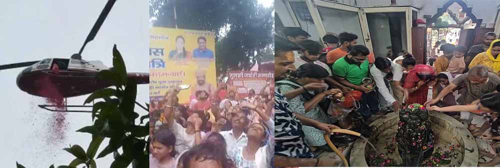 सावन के तीसरे सोमवार को बरेली के सात नाथ मंदिरों में शिवभक्तों की भीड़ उमड़ी। पहली बार नाथ नगरी में शिवभक्तों पर हेलीकॉप्टर से फूल बरसाए गए। कमिश्नर, डीआईजी, डीएम और एसएसपी ने हेलीकॉप्टर से भक्तों पर पुष्प वर्षा की। आसमान से बरसते फूलों के बीच शिवभक्तों ने हाथ उठाकर हर-हर महादेव के जयकारे लगाए। इस दौरान मंदिर परिसर जयकारों से गुंजायमान हो गए। शहरवासी भी खुश नजर आए।