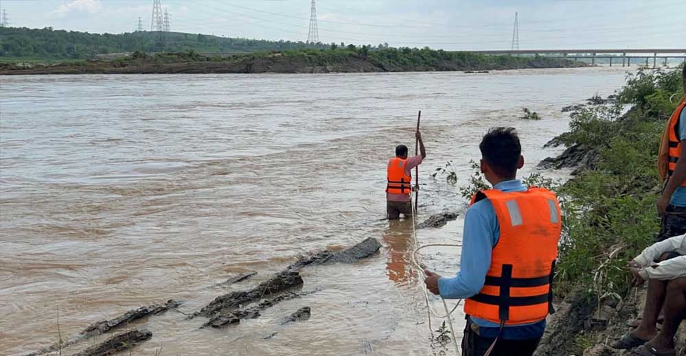 एसडीईआरएफ तथा होमगार्ड की टीम ने सोन नदी में फसे गोवंश को सुरक्षित नदी पार कराया