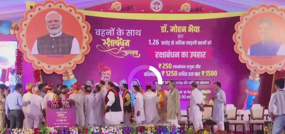 सीएम मोहन यादव ने आज राजगढ़ में घोषणा की है कि भाईदूज से लाड़ली बहनों को 1500 रुपए दिये जाएंगे। 2026 और 27 में भी राशि बढ़ाएंगे और 2028 तक 3 हजार प्रतिमाह की जाएगी। मोहन यादव यहां नरसिंहगढ़, जिला राजगढ़ में आयोजित बहनों के साथ 'रक्षाबंधन उत्सव' एवं 1.26 करोड़ से अधिक लाड़ली बहनों को रक्षाबंधन का उपहार अंतरण में बोल रहे थे।