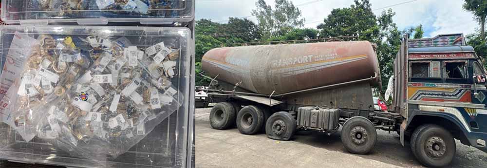 तस्करी का भंडाफोड़ : कार में करोड़ों के जेवर, ट्रक में भारी मात्रा में अंग्रेजी शराब