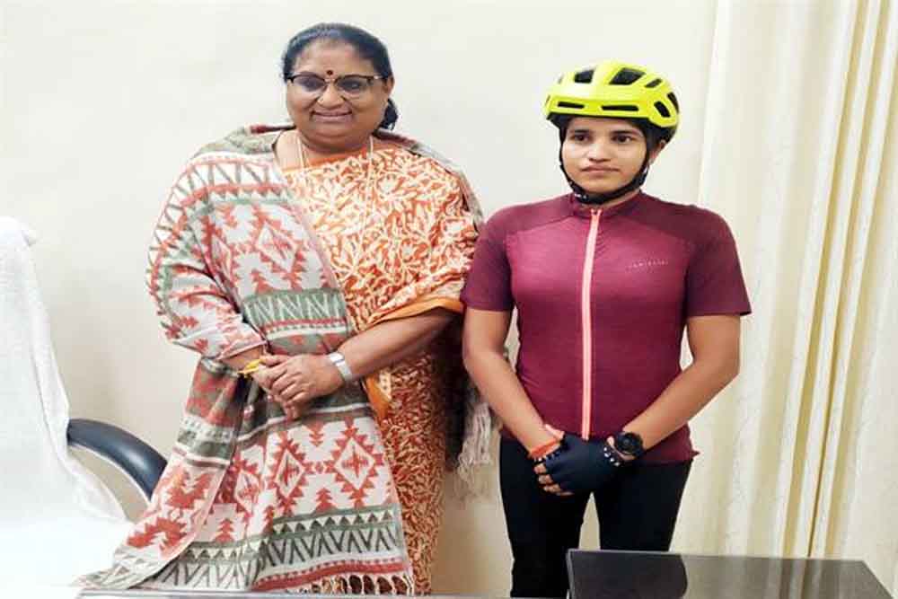 मंत्री सुश्री भूरिया से मिली सोलो महिला साइक्लिस्ट आशा मालवीय