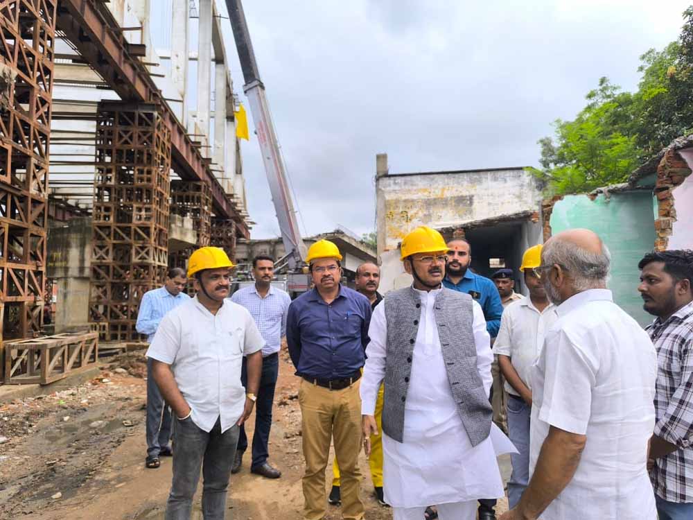 रेलवे ओवर ब्रिज निर्माण कार्यों का मौके पर पहुंच राज्यमंत्री श्री दिलीप जायसवाल ने लिया जायजा