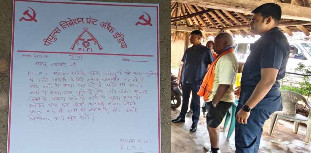 बता दें, पूर्व उपसरपंच के घर चस्पा किए गए पर्चे पर लिखा है कि आप हमारे आदमी के साथ ज्यादा राजनीति कर काम में बाधा डाल रहे हैं. पहले भी आपने हमारे काम में बाधा डाला था, जिसे नक्सल संगठने ने नजर-अंदाज कर दिया था. लेकिन अब फिर से आप राजनीति कर हमारे काम के बीच में आ रहे हैं. साथ ही चेतावनी देते हुए लिखा कि अगर आपने अगली बार ऐसा किया, तो आप पर कार्रवाई की जाएगी, जिसमें आपको जान-माल की हानि होगी.