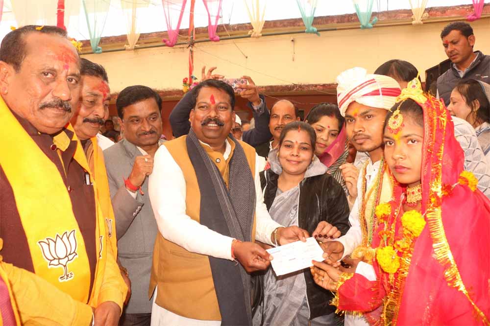 मुख्यमंत्री कन्या विवाह योजना के तहत एक छत के नीचे बेटियों का विवाह संपन्न होने पर माता पिता के माथे से बेटियों के विवाह की चिंता समाप्त हो गई है। योजना के तहत हजारो बेटियों के हाथ पीले हो चुके है इसके साथ ही उन्हें 49 हजार रूपये का चेक प्रदान किया जाता है, जिससे वे अपने नये जीवन की शुरूआत कर सके ।