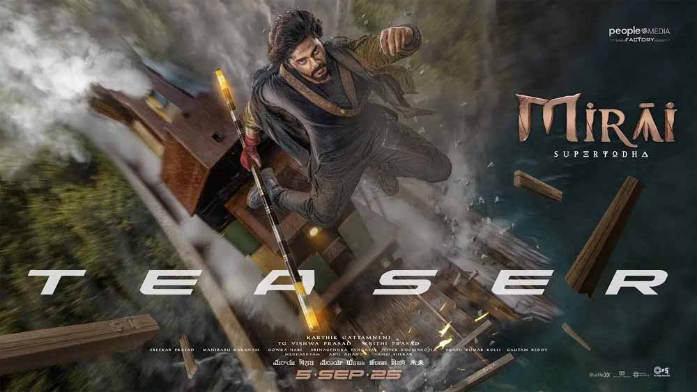 दक्षिण भारतीय फिल्मों के सुपरस्टार तेज सज्जा की फिल्म ‘मिराई’ का टीजर रिलीज हो गया है। कार्तिक गट्टमनेनी के निर्देशन में बनी और पीपल मीडिया फैक्ट्री के टी.जी. विश्व प्रसाद और कृति प्रसाद द्वारा निर्मित, मिराई एक ऐसे निर्भीक सुपर योद्धा की कहानी है जिसे नौ दिव्य ग्रंथों की रक्षा का दायित्व सौंपा गया है,जिन पर मानवता का भविष्य टिका है। इस फिल्म का टीजर रिलीज हो गया है।टीज़र इस भव्य गाथा की एक रोमांचक झलक पेश करता है, हर फ्रेम में रहस्य, गति और विशालता से भरा हुआ।