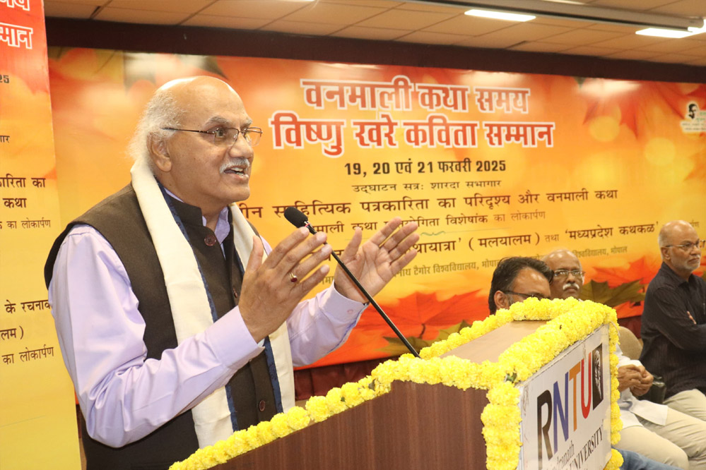 कला, साहित्य एवं संस्कृति के लिये समर्पित वनमाली सृजनपीठ द्वारा तीन दिवसीय वनमाली कथा समय एवं राष्ट्रीय विष्णु खरे कविता सम्मान समारोह का भव्य शुभारंभ रबीन्द्रनाथ टैगोर विश्वविद्यालय में बुधवार को हुआ। समारोह के पहले सत्र में वरिष्ठ कहानीकार ममता कालिया, वनमाली कथा पत्रिका के प्रधान सम्पादक मुकेश वर्मा, तद्भव पत्रिका के सम्पादक अखिलेश, कहानीकार ओमा शर्मा ने 'समकालीन साहित्यिक पत्रकारिता का परिदृश्य और वनमाली कथा' विषय पर सत्र में अपने वक्तव्य प्रस्तुत किये।