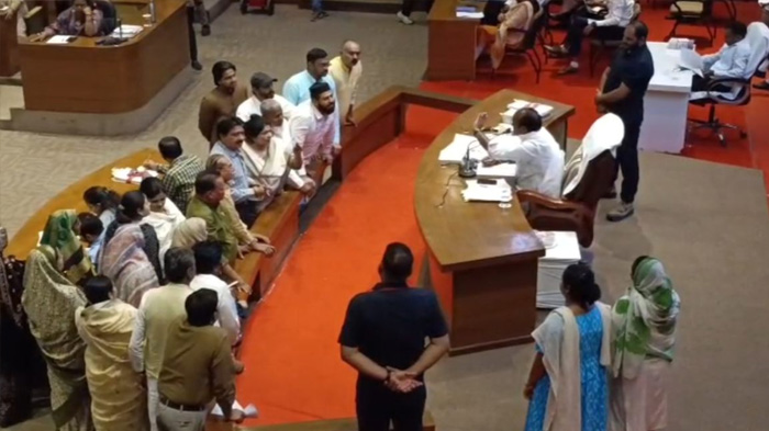 बैठक में महापौर मालती राय ने वन नेशन वन इलेक्शन का समर्थन प्रस्ताव रखा। भाजपा पार्षद सूर्यकांत गुप्ता ने इस पर चर्चा शुरू करनी चाही, लेकिन कांग्रेस पार्षदों ने विरोध जताया। उन्होंने कहा कि यह लोकसभा का मामला है, नगर निगम में इसे क्यों उठाया जा रहा है। इस पर निगम अध्यक्ष सूर्यवंशी ने कहा कि प्रस्ताव मेरी अनुमति से रखा गया है, सभी पार्षद अपनी सीटों पर बैठें। लेकिन कांग्रेस पार्षदों ने विरोध जारी रखा और अध्यक्ष की आसंदी के सामने पहुंच गए। अध्यक्ष ने कांग्रेस पार्षदों को वापस भेजा, वहीं भाजपा पार्षद सूर्यकांत गुप्ता ने प्रस्ताव रखना जारी रखा और भाजपा पार्षदों ने इसका समर्थन किया।