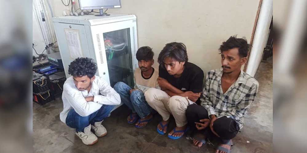 इंदौर के राजा रघुवंशी की हत्या में शामिल चार मुख्य आरोपियों को मेघालय पुलिस ने एक साथ मीडिया के सामने पेश किया. चारों आरोपियों की जो तस्वीर सामने आई है, उसमें हत्या का आरोपी और सोनम का प्रेमी राज कुशवाह सफेद शर्ट में अकेले बैठा दिख रहा है, उसके बगल में आनंद बैठा है, जबकि आकाश काले टी-शर्ट में और विशाल सफेद चेक्स की शर्ट में नजर आ रहा है.
