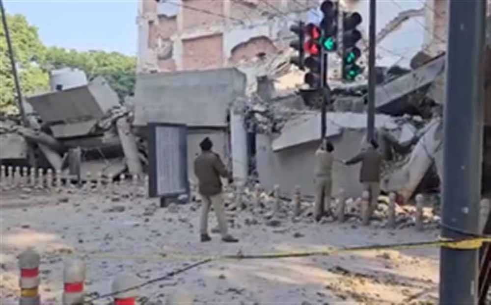 चंडीगढ़ के सेक्टर-17 में डिप्टी कमिश्नर कार्यालय के पास पांच दशक पुरानी महफिल होटल की इमारत गिरी