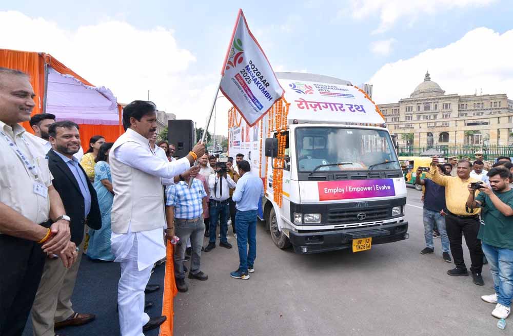 श्रम एवं सेवायोजन मंत्री अनिल राजभर ने सोमवार को विधान सभा, लखनऊ से रोजगार महाकुंभ 2025 हेतु महाकुंभ अभियान का शुभारम्भ किया। इस कार्यक्रम में मंत्री जी ने हरी झंडी दिखाकर रोजगार रथ को प्रदेश के जनपदों में प्रचार-प्रसार के लिए रवाना किया। इस अवसर पर उन्होंने कहा कि शासन की मंशा है कि हर युवा के हाथों रोजगार उपलब्ध हो। इसी के दृष्टिगत श्रम एवं सेवायोजन विभाग द्वारा बीसीएस कंसल्टिंग प्राइवेट लिमिटेड, लखनऊ और द इकोनॉमिक टाइम्स ऑफ इंडिया के सहयोग से 26 से 28 अगस्त 2025 तक राजधानी लखनऊ के इंदिरा गांधी प्रतिष्ठान में रोजगार महाकुंभ 2025 का आयोजन किया जा रहा है। उन्होंने कहा कि रोजगार रथ का उद्देश्य अधिक से अधिक युवाओं को इस महाकुंभ में प्रतिभाग के लिए प्रेरित करना और उन्हें राष्ट्रीय एवं अंतर्राष्ट्रीय स्तर पर उपलब्ध अवसरों से जोड़ना है। उन्होंने कहा कि रोजगार महाकुंभ 2025 के अंतर्गत 50 हजार युवाओं को रोजगार उपलब्ध कराया जाएगा।