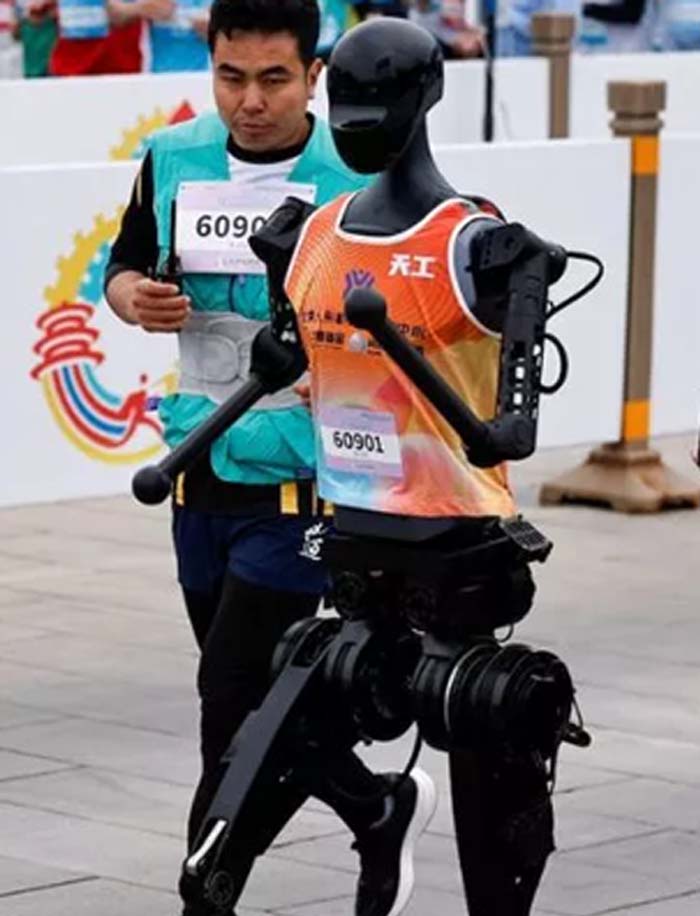 चीन ने शनिवार को हाफ मैराथन का आयोजन किया। यह अपने आप में अनोखा था, क्योंकि इसमें इंसानों के साथ रोबोट ने भी भाग लिया। यह ह्यूमनाइड रोबोट की विश्व की पहली ऐसी दौड़ बताई जा रही है।