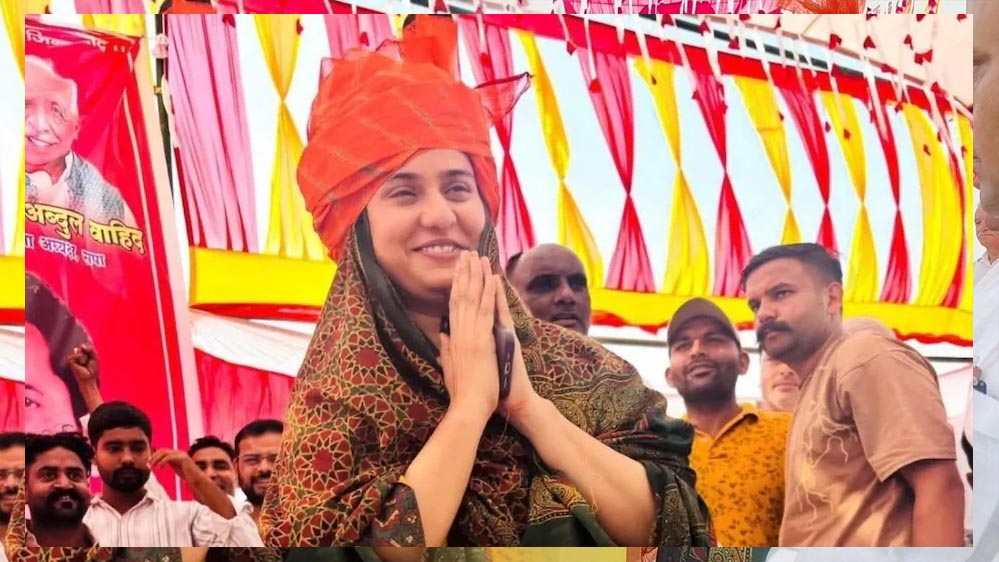 गुर्जर समाज से पगड़ी पहनकर इकरा हसन ने सभा को संबोधित किया. अपने संबोधन में उन्होंने समाज में एकता, शिक्षा और महिला सशक्तिकरण पर विशेष ज़ोर दिया. उनके भाषण के दौरान मौजूद भीड़ लगातार तालियां बजाकर उनका समर्थन करती रही.