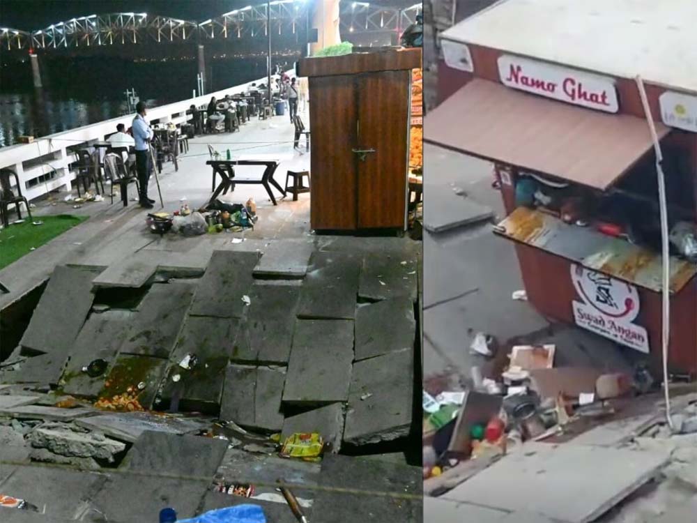 वाराणसी के सबसे प्रसिद्ध नमो घाट पर बुधवार की शाम जमीन धंसने से हड़कंप मच गया