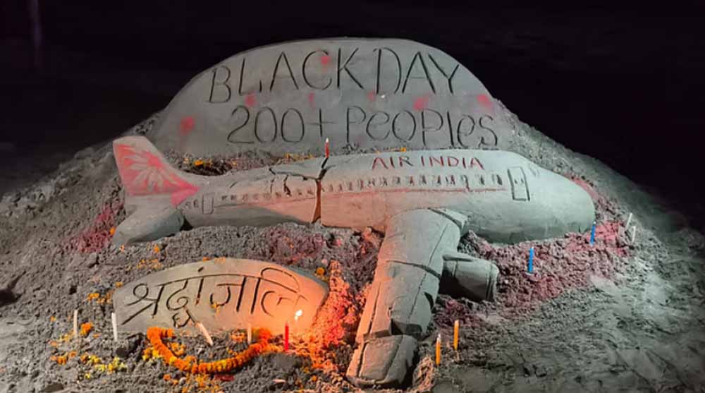 विमान हादसे में जान गंवाने वालों को सैंड आर्टिस्ट ने दी श्रद्धांजलि
