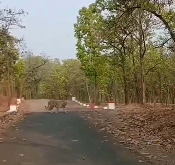 सूरजपुर के वन क्षेत्र में घूमता दिखा बाघ, यह बाघ चांदनी बिहारपुर वन परिक्षेत्र के चंपाजोर जंगल में नजर आया