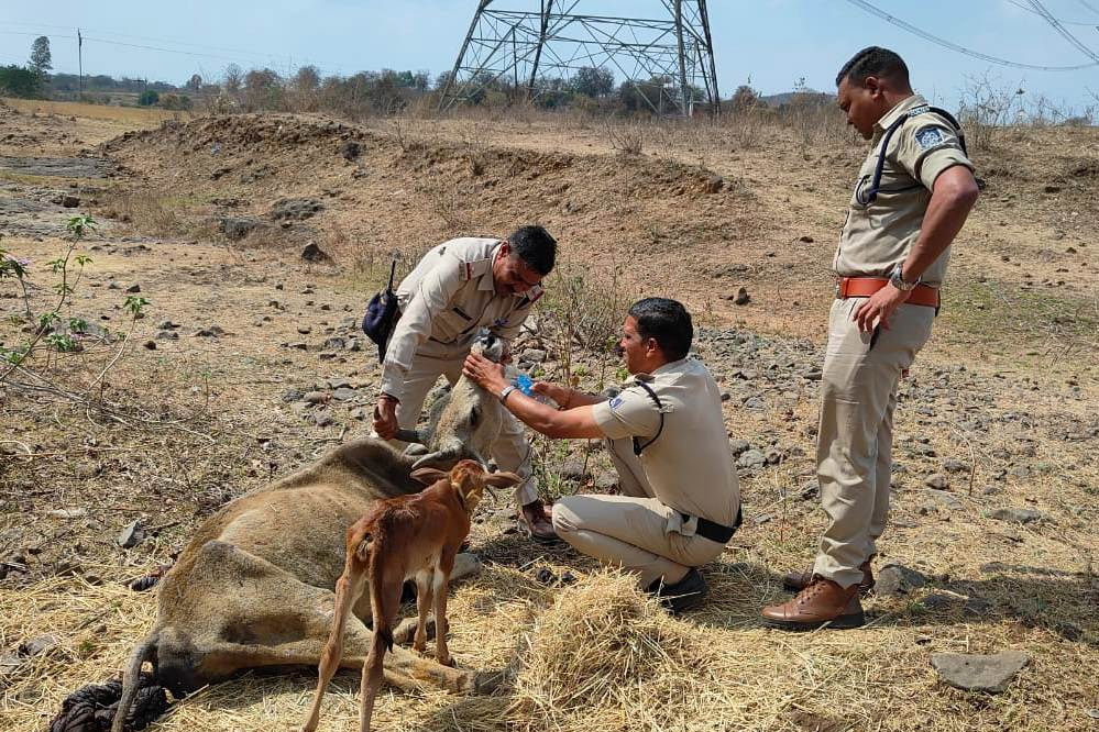ट्रैफिक पुलिस ने अपनी तत्परता और सराहनीय प्रयास से घायल गाय की जान बचाई