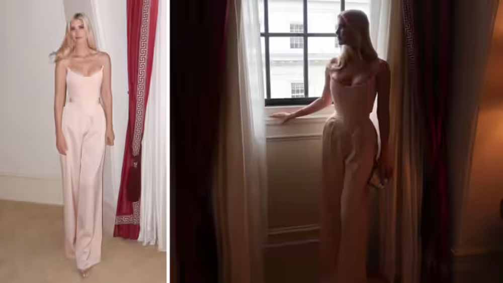 कॉर्सेट इवांका के बॉडी कर्व्स को ब्यूटीफुल तरीके से कॉम्प्लिमेंट कर रहा है, तो साथ में उन्होंने फ्लेयर्ड पैंट्स पहनी। जिसे हाई वेस्ट का रखा और वाइड लेग्स के साथ इसमें खूब सारी फ्लेयर्स ऐड की। जिससे लुक में बैलेंस क्रिएट हुआ और इवांका का ओवरऑल लुक भी क्लासी वाइब्स दे गया। जिसे उन्होंने बिना किसी एक्स्ट्रा एलिमेंट के स्टाइल किया।