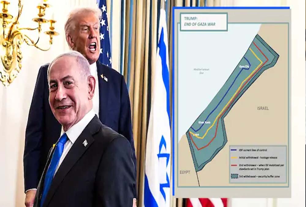 अमेरिकी राष्ट्रपति डोनाल्ड ट्रंप ने गाजा युद्ध को खत्म करवाने के लिए नया प्लान तैयार किया है. उन्होंने व्हाइट हाउस में इस प्लान को जारी किया. ट्रंप ने यह भी कहा है कि इजरायली पीएम बेंजामिन नेतान्याहू इस प्लान से सहमत हैं. इसके साथ ही ट्रंप ने गाजा का नया नक्शा तैयार किया है. इस नक्शे के अनुसार गाजा और इजरायल के बीच अब हमेशा के लिए एक बफर जोर रहेगा. यानी कि इस रेखा के पार न तो इजरायली सैनिक जा सकेंगे, न ही फिलीस्तीन के लोग आ सकेंगे.