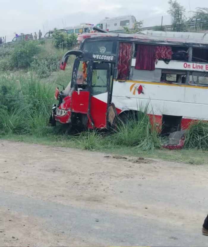 आगरा लखनऊ एक्सप्रेसवे पर डबल डेकर बस गिरने से दो यात्रियों की मौत