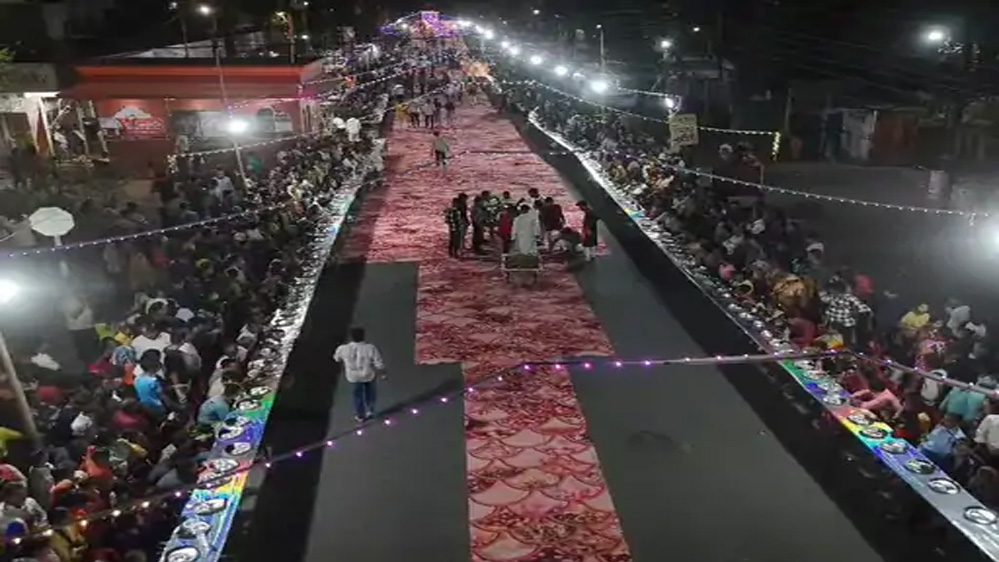 भगवान को भोग अर्पित करने और आरती के बाद भंडारा शुरू हुआ। श्रद्धालुओं को टेबल-कुर्सी पर बिठाकर दाल, बाफले, लड्डू और कड़ी की प्रसादी परोसी गई। वर्ल्ड रिकॉर्ड की टीम के एशिया हेड डॉ. मनीष विश्रोई और जज वेदांत जोशी ने आयोजन समिति को प्रमाण पत्र सौंपा।