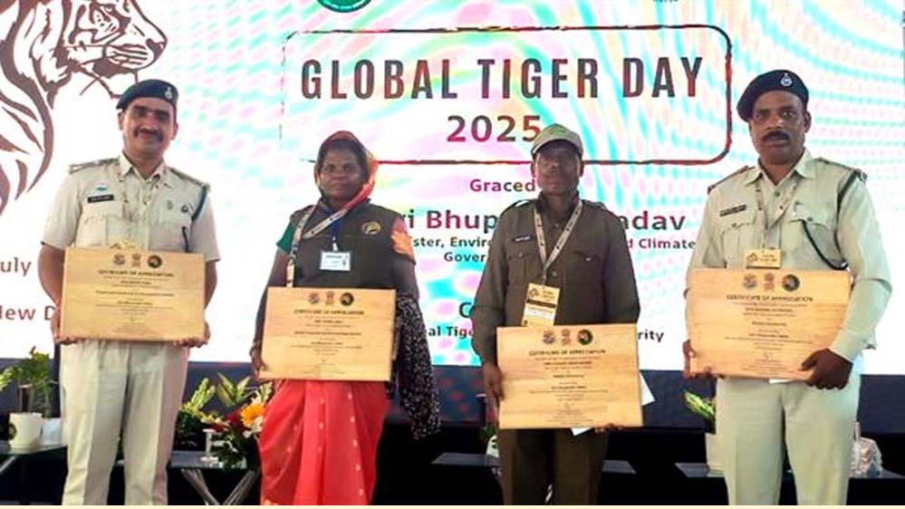 केन्द्रीय वन एवं पर्यावरण मंत्री भूपेन्द्र यादव ने अंतर्राष्ट्रीय बाघ दिवस के अवसर पर दिल्ली में आयोजित समारोह में उत्कृष्ट कार्य करने वाले मध्यप्रदेश टाइगर रिजर्व के वनकर्मियों को सम्मानित किया। इनमें सतपुड़ा टाइगर रिजर्व के फॉरेस्ट गार्ड राजेश पटेल, कान्हा टाइगर रिजर्व के स्थायी कर्मी सुखमान कुशरे एवं फॉरेस्ट गार्ड बसंत लाल मरावी एवं पेंच टाइगर रिजर्व की फॉरेस्ट वॉचर श्रीमती झुन्नी बाई शामिल हैं।