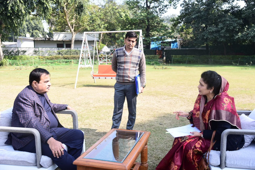 केन्द्रीय मंत्री नितिन गडकरी ने राज्य मंत्री श्रीमती कृष्णा गौर से की भेंट
