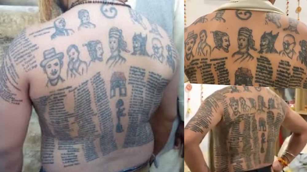 देश पर कुर्बान होने वाले शहीदों को श्रद्धांजलि देने के लिए एक युवक ने देशभक्ति का जुनून दिखाया। युवक ने अपनी पीठ पर एक- दो नहीं बल्कि पूरे 559 शहीदों के नाम गुदवाए हैं। यही नहीं बल्कि कई महापुरुषों की तस्वीरें भी बनवाई हुई हैं।