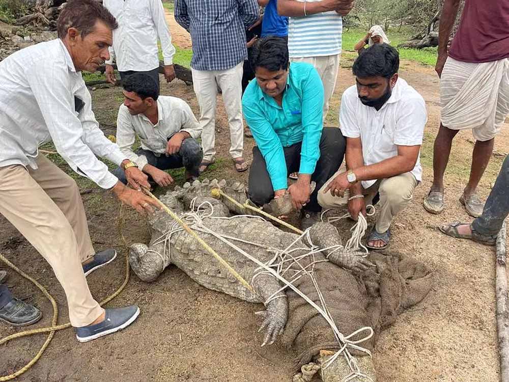 वन विभाग की टीम सूचना मिलने के दो घंटे बाद मौके पर पहुंच गई। मगरमच्छ को रेस्क्यू किया गया। सुबह पांच बजे ग्रामीण कामकाज कर रहे थे। इसी बीच ग्रामीणों ने एक बड़ी लकड़ी देखी, लेकिन जब इसमें हरकत हुई तो ग्रामीणों को समझते देर नहीं लगी कि मगरमच्छ है। ग्रामीणों ने इसे अपने स्तर पर पकड़ने का प्रयास किया, लेकिन यह लगभग 10 फीट लंबा वयस्क मगरमच्छ था, जो काबू में नहीं आ रहा था।