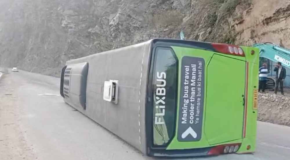 वोल्वो बस पहाड़ी से टकराकर सड़क पर पलटी, 30 यात्री घायल