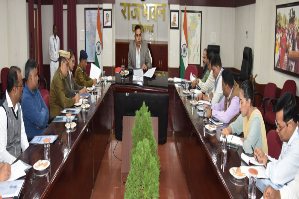 बैठक में रायपुर जिले के प्रशासन एवं पुलिस के अधिकारी, राजभवन के अधिकारी, नगर निगम, लोकनिर्माण, लोक स्वास्थ्य यांत्रिकी विभाग, बिजली, उद्यानिकी, आयुष विभागों के अधिकारी एवं कर्मचारी उपस्थित थे।