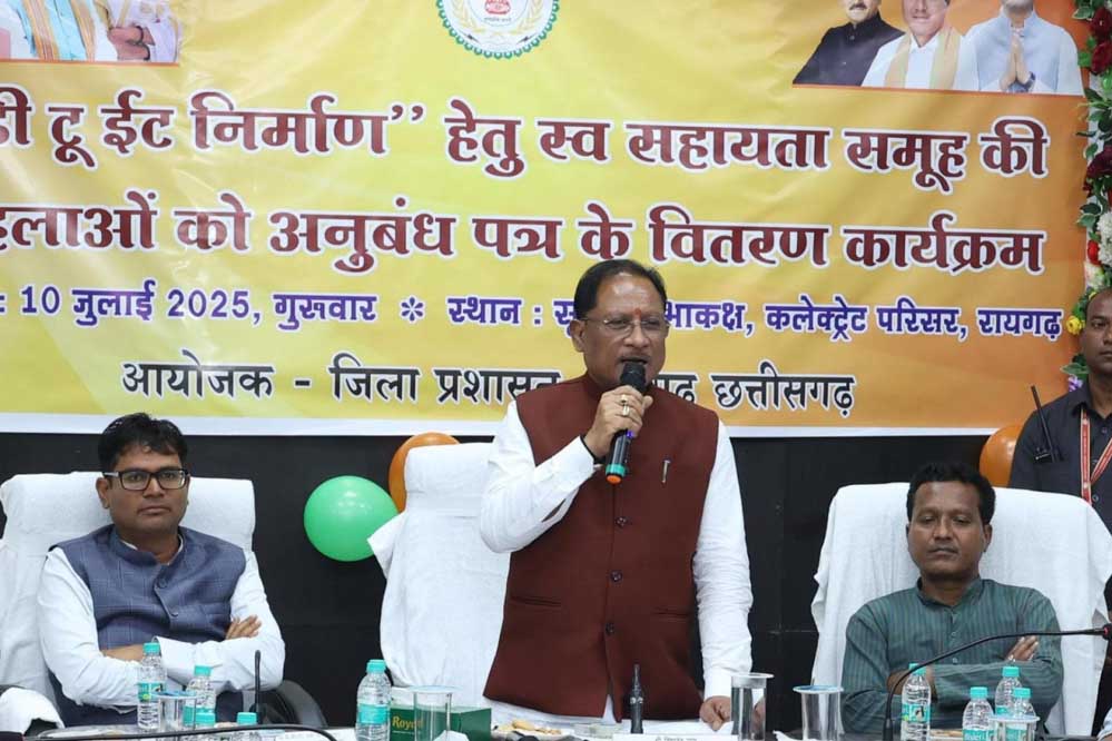 मुख्यमंत्री विष्णुदेव साय ने रायगढ़ में आयोजित कार्यक्रम में 10 महिला स्व-सहायता समूहों को रेडी टू ईट निर्माण एवं वितरण के लिए अनुबंध पत्र सौंपे। इस अवसर पर वित्त मंत्री ओ.पी. चौधरी, रायगढ़ सांसद राधेश्याम राठिया, राज्यसभा सांसद देवेंद्र प्रताप सिंह, विधायक पुरंदर मिश्रा, जिला पंचायत अध्यक्ष श्रीमती शिखा रविंद्र गबेल, महापौर जीवर्धन चौहान एवं जिला पंचायत सदस्य श्रीमती सुषमा खलखो उपस्थित थीं।
