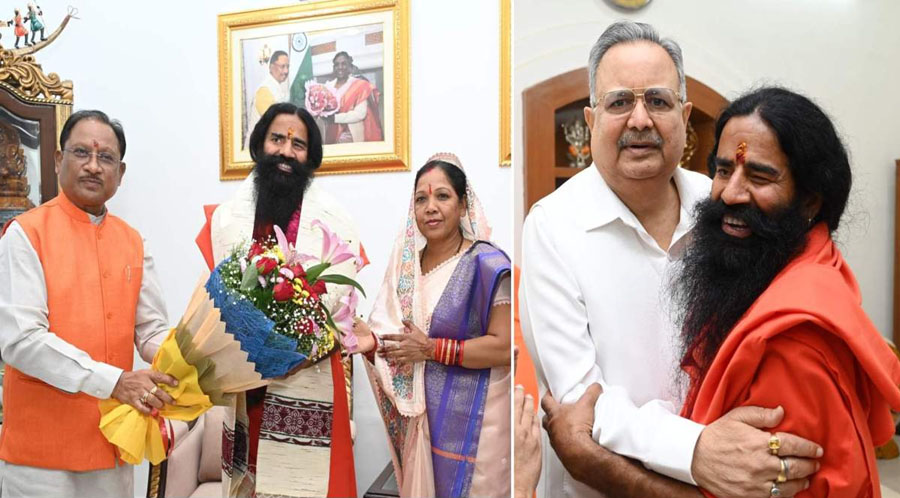 सीएम साय और विस अध्यक्ष रमन सिंह से मिले योग गुरु स्वामी रामदेव