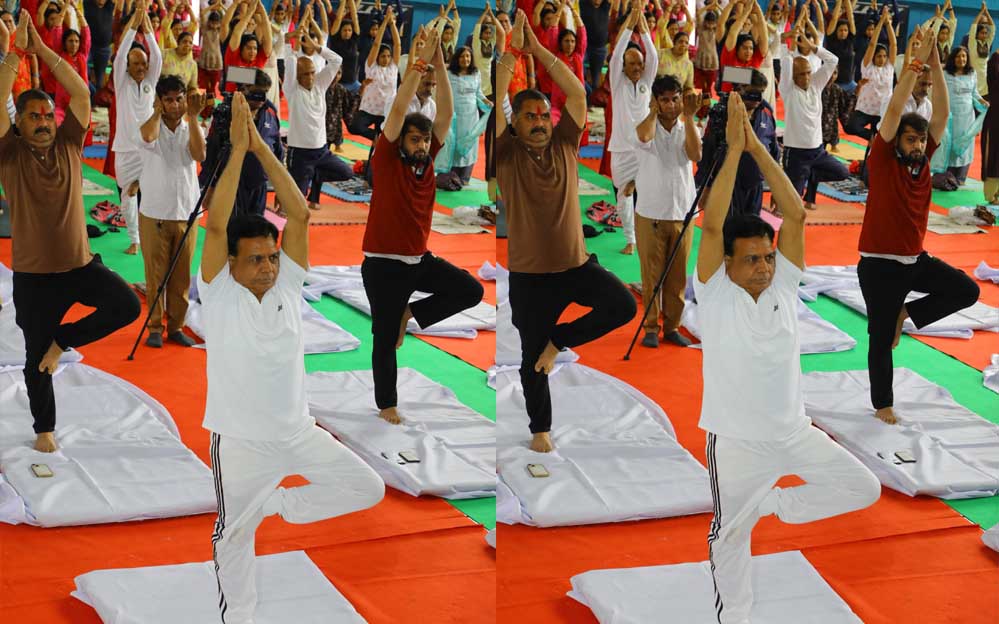 कार्यक्रम में योग गुरू राजेश बैरागी ने मंच पर योग का प्रदर्शन किया। उनके साथ-साथ उपस्थित अतिथियों एवं अन्य लोगों ने योग के लिए हाथ उठाए। योग के प्रति उत्साही भागीदारी देखी गई है। इस वर्ष अंतर्राष्ट्रीय योग दिवस का एक दशक पूर्ण हुआ है।