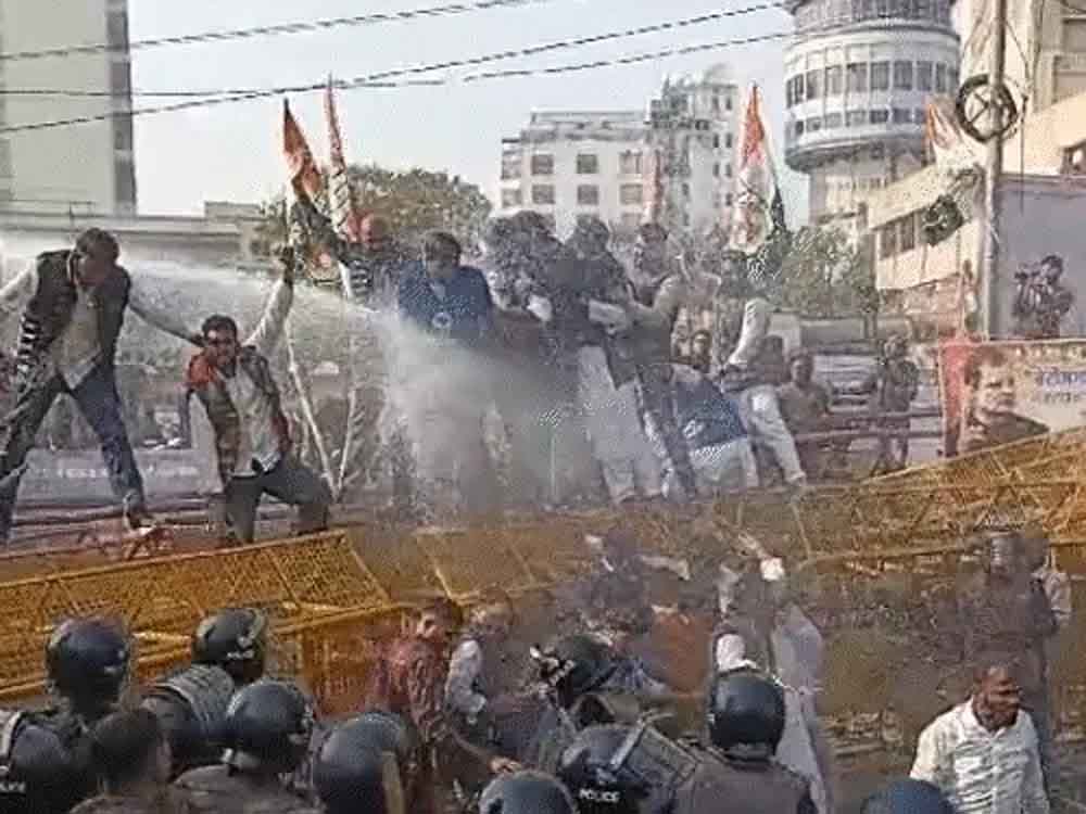 बेरोजगारी के खिलाफ यूथ कांग्रेस का प्रदर्शन, पुलिस और प्रदर्शनकारियों के बीच थोड़ी झड़प, वाटर कैनन से पानी का किया छिड़काव